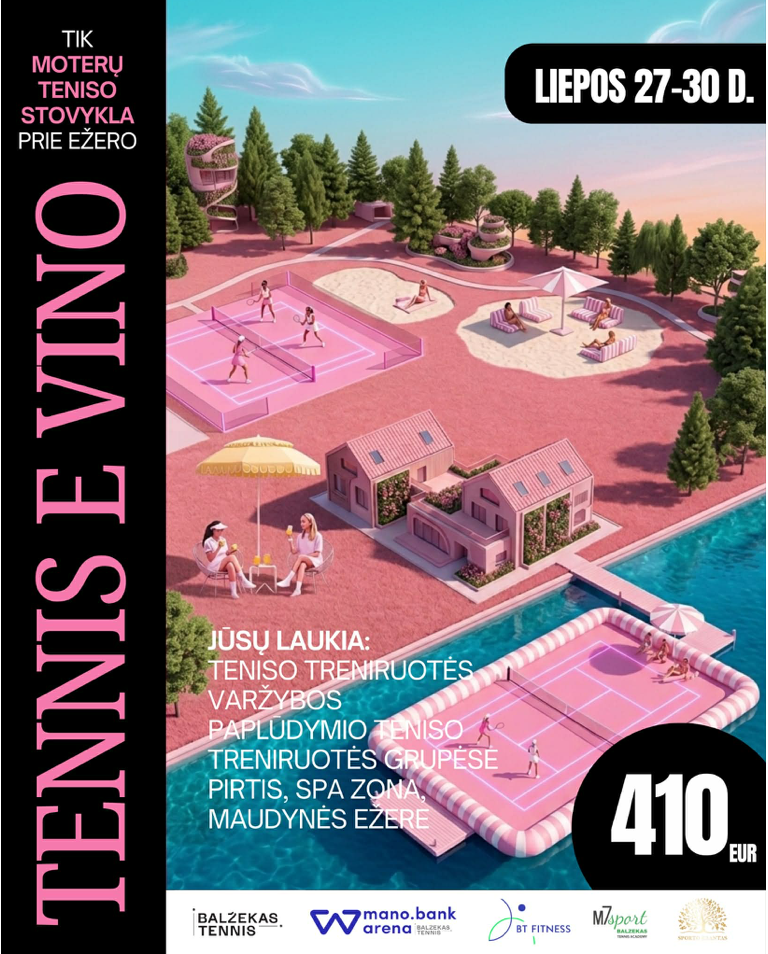 Moterų teniso stovykla "TENNIS E VINO”, 07.27 - 07.30, “Sporto krante” - avansinis mokėjimas
